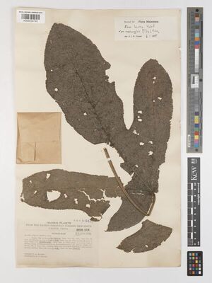 • Govaerts, R. (2001). World Checklist of Seed Plants Database in ACCESS Genera starting with letter E-F: 1-50919. [Cited as Ficus hirta subsp. roxburghii.]