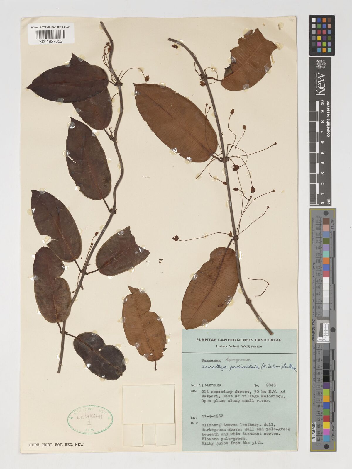 • Lejoy, J., Ndjele, M.-B. & Geerinck, D. (2010). Catalogue-flore des plantes vasculaires des districts de Kisangani et de la Tshopo (RD Congo). Taxonomania. Revue de Taxonomie et de Nomenclature Botaniques 30: 1-307. [Cited as Zacateza pedicellata.]