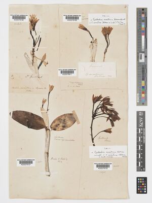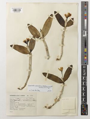 • Govaerts, R. (2004). World Checklist of Monocotyledons Database in ACCESS: 1-54382. The Board of Trustees of the Royal Botanic Gardens, Kew. [Cited as Cattleya aurantiaca.]