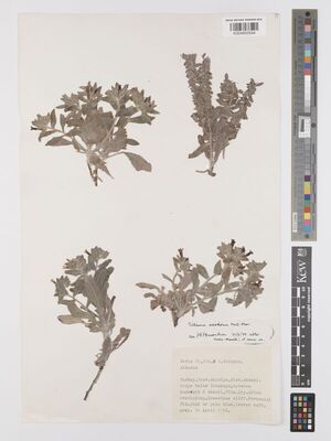 The native range of this species is SW. Türkiye (Antalya). It is a perennial or subshrub and grows primarily in the subtropical biome.