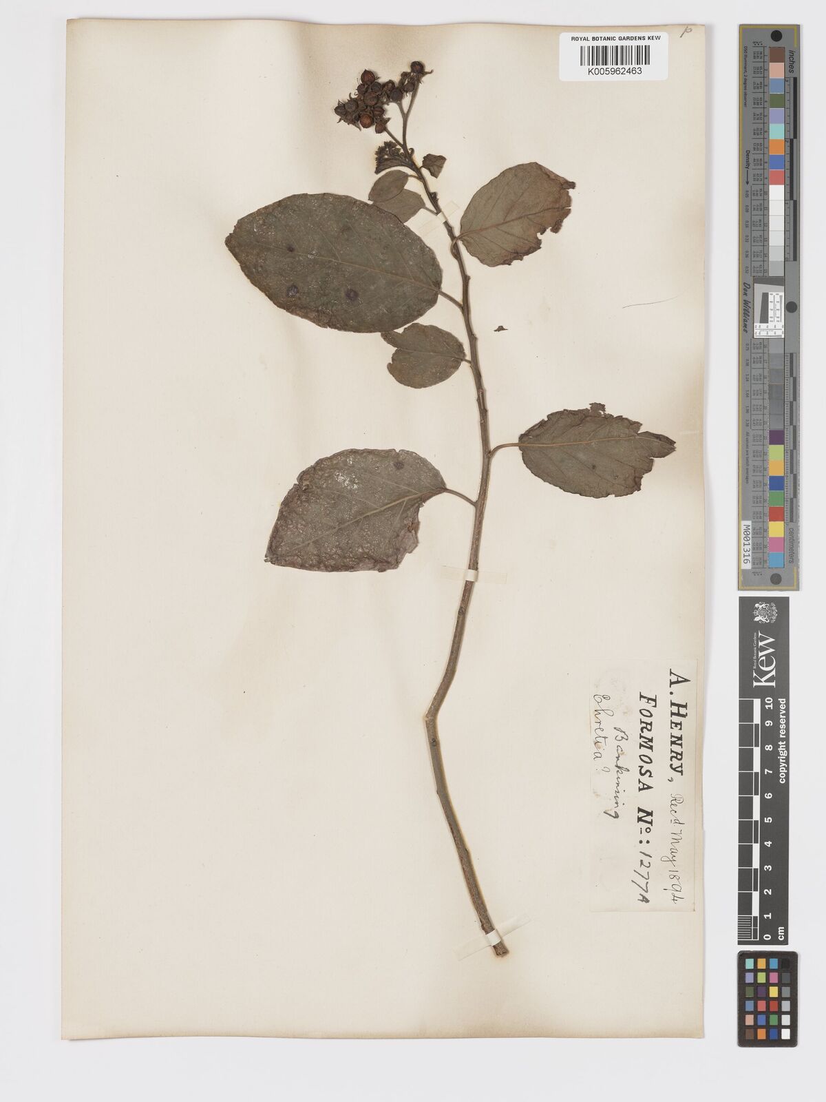 Wilford, C. [539] Taiwan Ehretia formosana K000998013 Unknown Type Material Yes