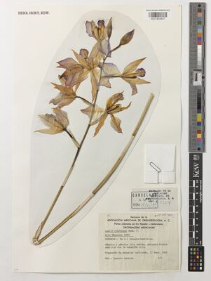 The native range of this hybrid is Mexico (Hidalgo). It is a pseudobulbous epiphyte and grows primarily in the seasonally dry tropical biome. The hybrid formula is L. anceps × L. autumnalis.