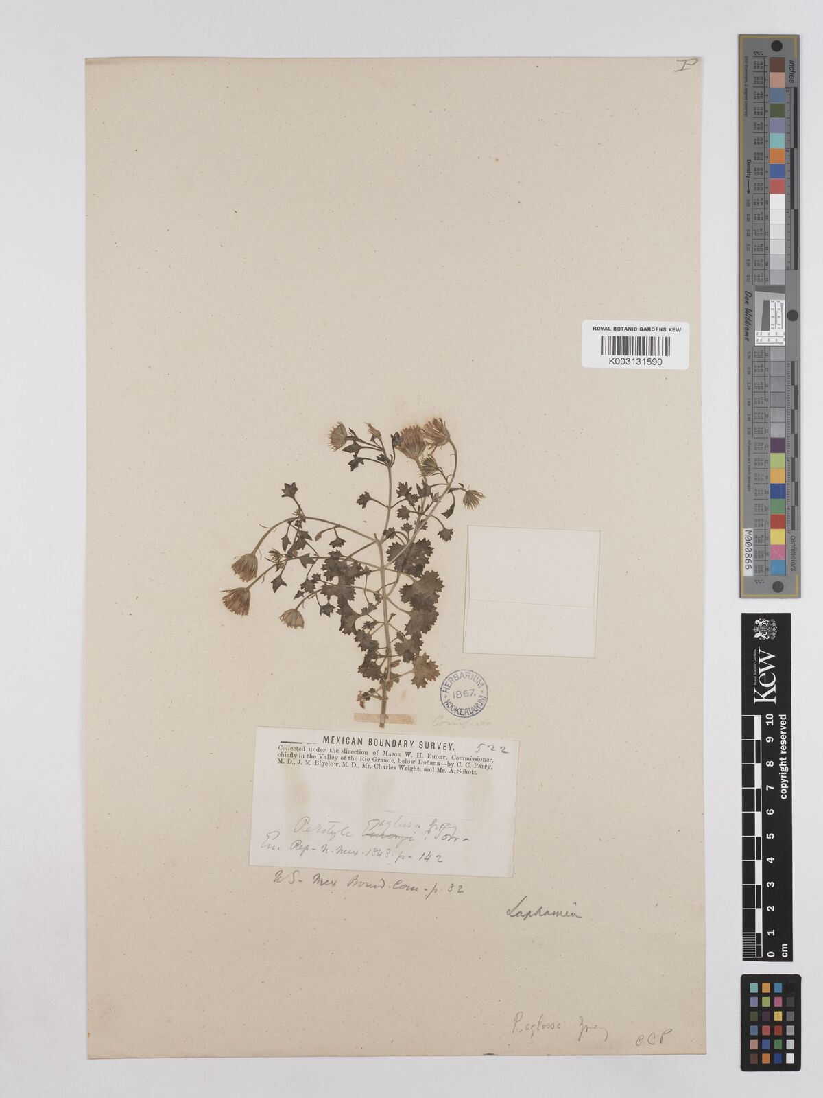 • Roskov Y. & al. (eds.) (2018). Species 2000 & ITIS Catalogue of Life Naturalis, Leiden, the Netherlands. [Cited as Perityle aglossa.]
