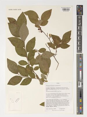 Pressed and dried specimens of Vaccinium corymbosum are held in Kew's Herbarium where they are available to researchers by appointment. The details of some of these specimens, including images, can be seen online in Kew's Herbarium Catalogue.