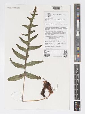 • Roskov Y. & al. (eds.) (2018). World Ferns: Checklist of Ferns and Lycophytes of the World. Species 2000 & ITIS Catalogue of Life Naturalis, Leiden, the Netherlands. [Cited as Phlebodium areolatum.]
