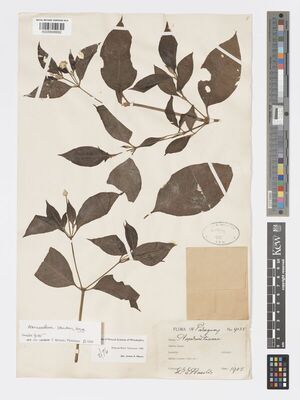The native range of this species is SE. Mexico to S. Tropical America and Lesser Antilles. It is a scrambling subshrub or shrub and grows primarily in the wet tropical biome.