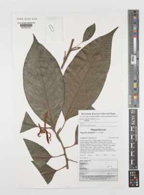• Govaerts, R. (2003). World Checklist of Selected Plant Families Database in ACCESS: 1-216203. The Board of Trustees of the Royal Botanic Gardens, Kew. [Cited as Magnolia champaca.]