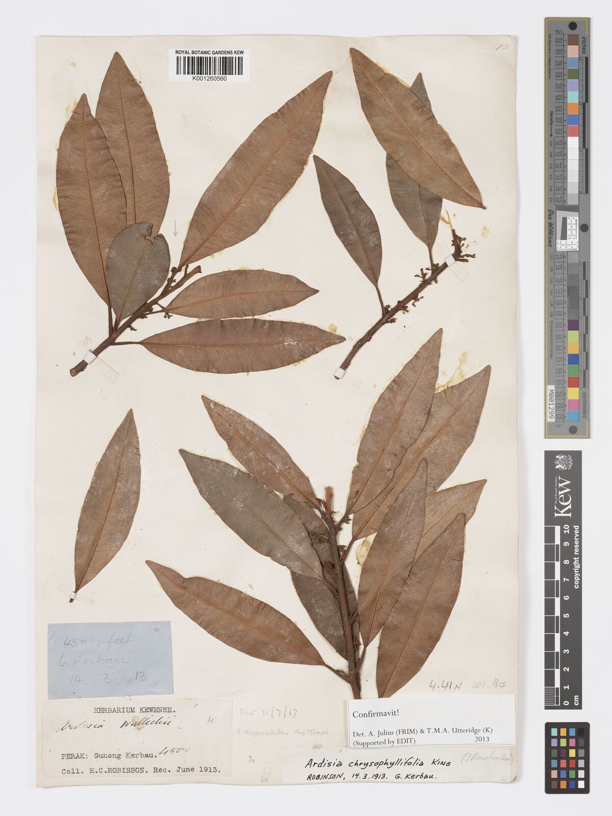 Jan 1, 2013 Whitmore, T.C. [FRI 0927] Malaysia Ardisia mystica K000960215 Paratype Yes