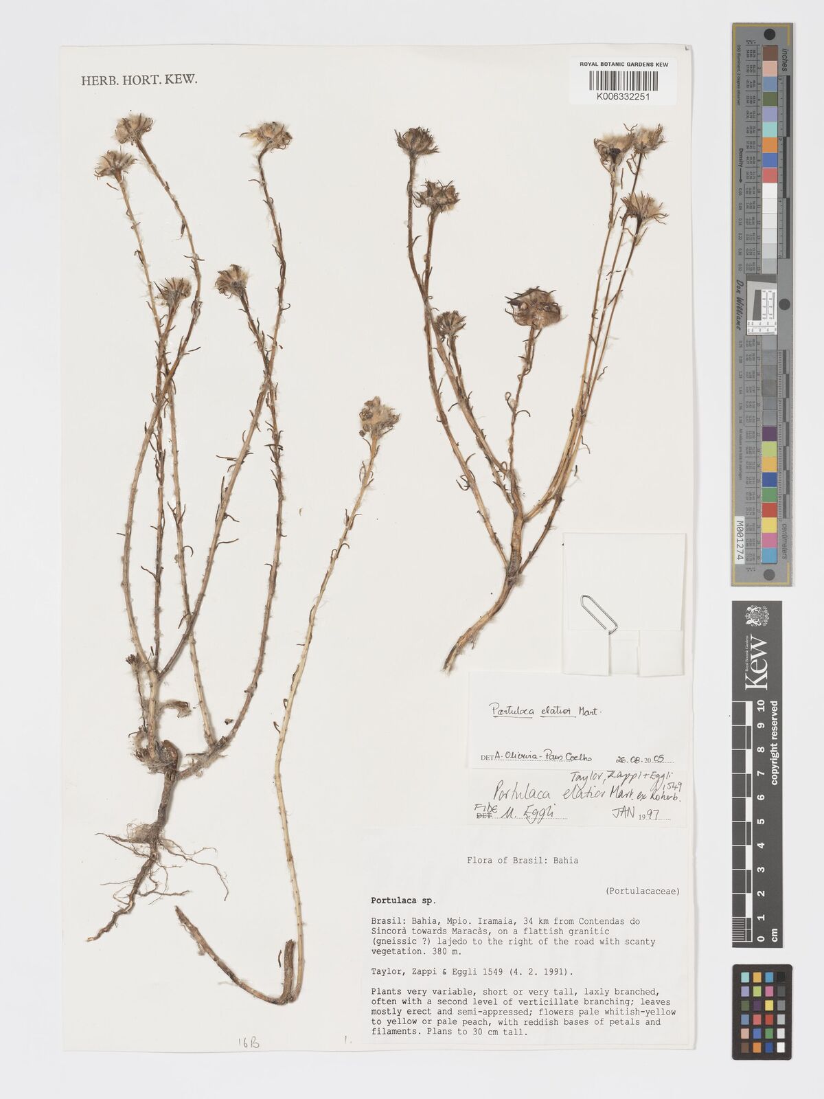 Oct 6, 2005 Miller, O.O.; Johnston, J.R. [11] Venezuela Portulaca venezuelensis K000424609 Isotype Yes
