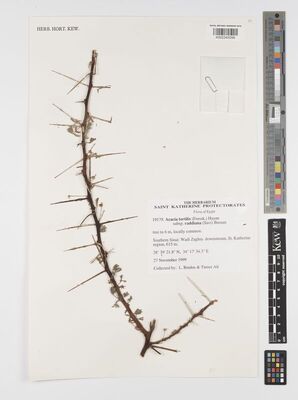 The native range of this subspecies is Sahara to Kenya, Sinai to Arabian Peninsula. It is a shrub or tree and grows primarily in the desert or dry shrubland biome.