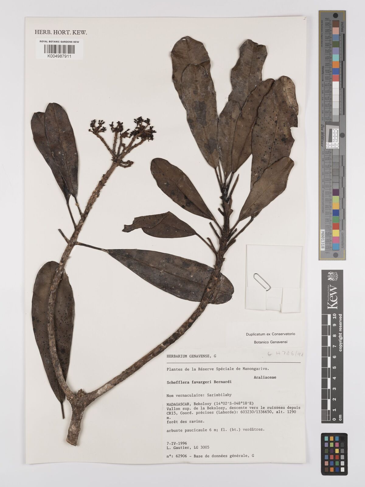 Razafiniary, V. Ratianarivo, F.; Rajaovelona, L. R.; Rasaminirina, F.; Rakotomalala, J. H.; Rafa [VELS 258] Madagascar Schefflera favargeri K001619161 No