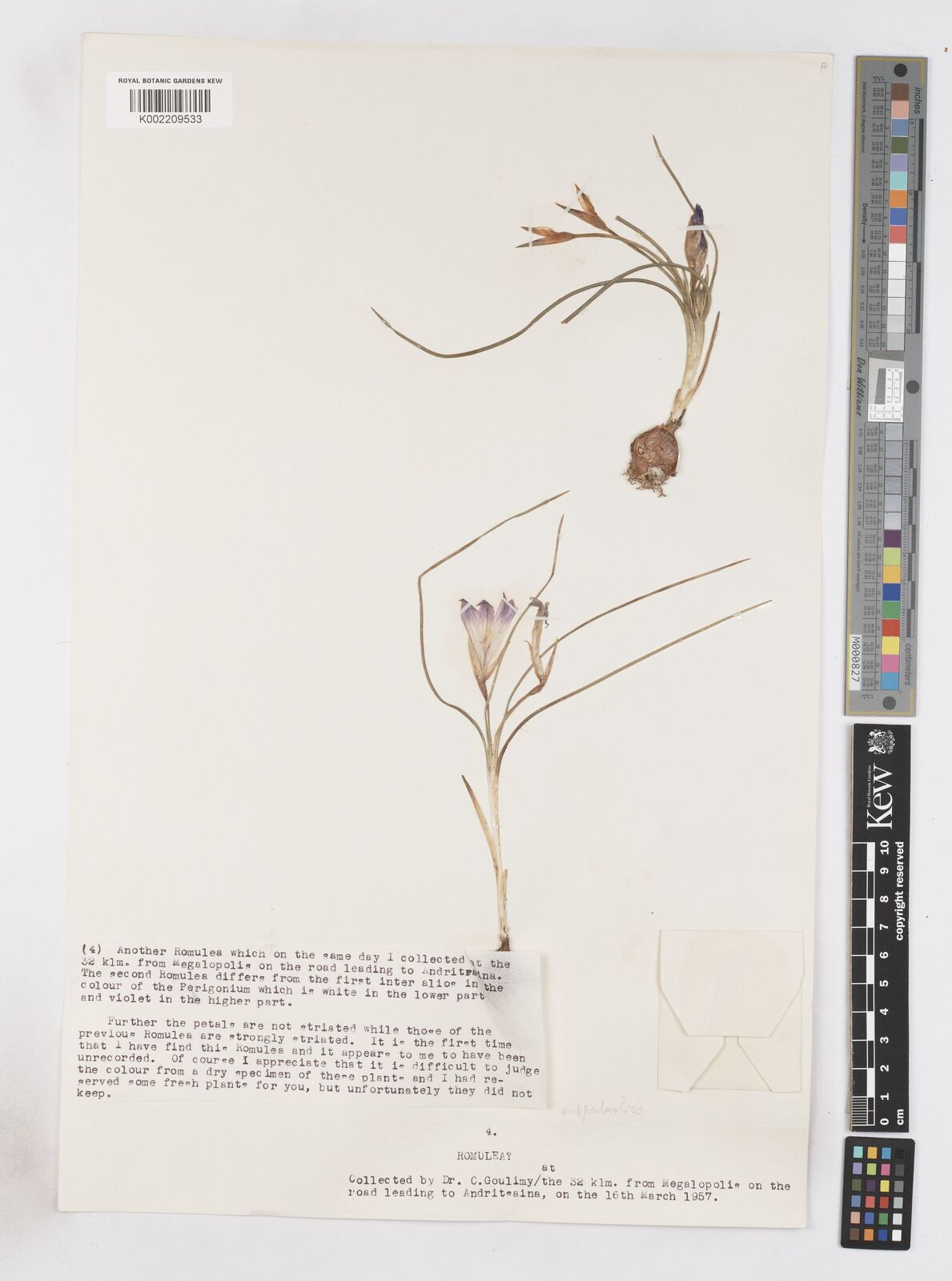 {Heldreich} [s.n.] Greece Romulea bulbocodium subsp. subpalustris K002209539 Yes