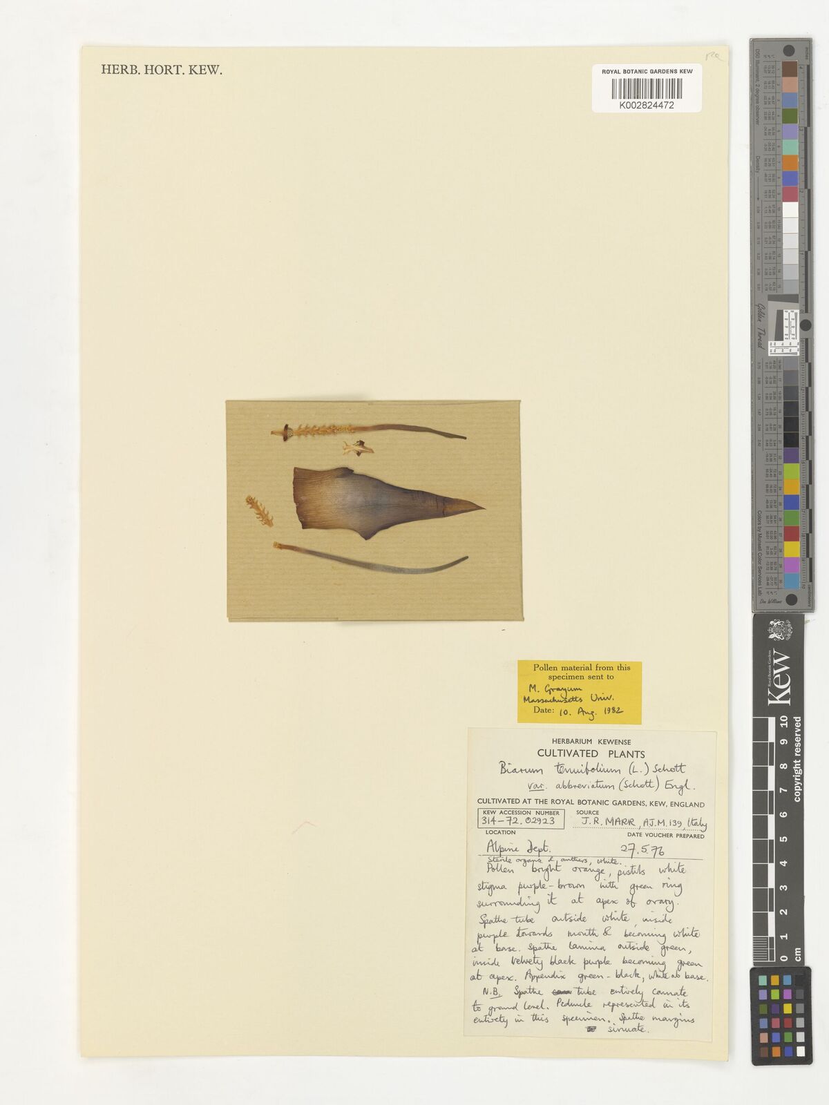 • Haigh, A., Clark, B., Reynolds, L., Mayo, S.J., Croat, T.B., Lay, L., Boyce, P.C., Mora, M., Bogner, J., Sellaro, M., Wong, S.Y., Kostelac, C., Grayum, M.H., Keating, R.C., Ruckert, G., Naylor, M.F. and Hay, A., CATE Araceae, 17 Dec 2011.
