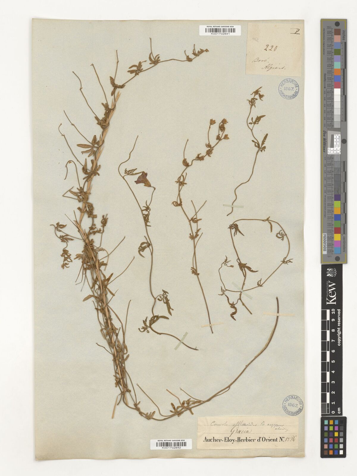 • Valentine, D.H. et al. in Tutin, T.G. & al. (eds.) (1972). Convolvulaceae. Flora Europaea 3: 74-83. Cambridge University Press. [Cited as Convolvulus althaeoides subsp tenuissimus.]