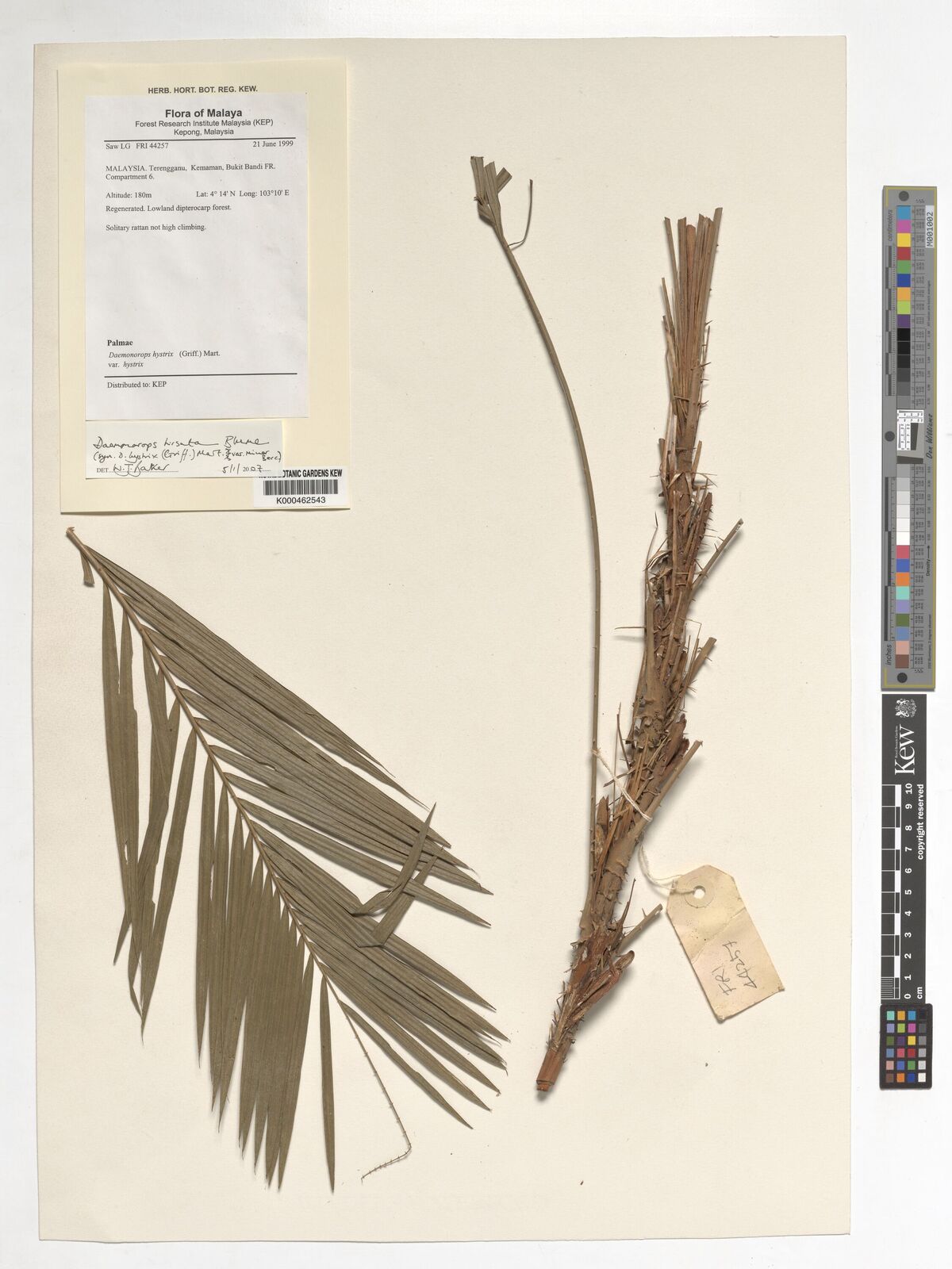 Tan Ah King [1] Malaysia Daemonorops hystrix var. minor K000826820 Yes