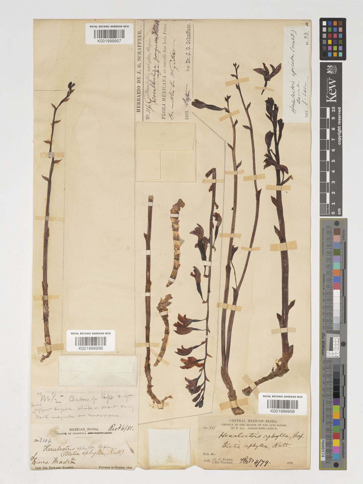 • Kennedy, A.H. & Watson, L.E. (2010). Species deliminations and phylogenetic relationships within the fully myco-heterotrophic Hexalectris (Orchidaceae). Systematic Botany 35: 64-76.