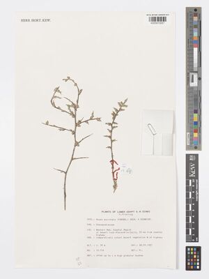 The native range of this subspecies is N. Africa to Afghanistan and Arabian Peninsula. It is a subshrub or shrub and grows primarily in the subtropical biome.