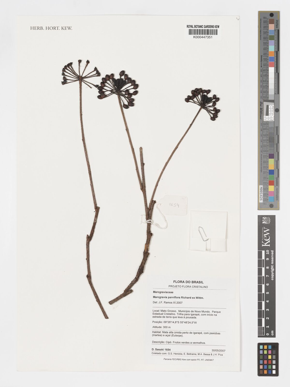 Nov 1, 2007 Sasaki, D.; Henicka, G.S.; Beltrame, E.; Bessa, M.A.; Piva, J.H. [1654] Brazil Marcgravia parviflora K000447351 No