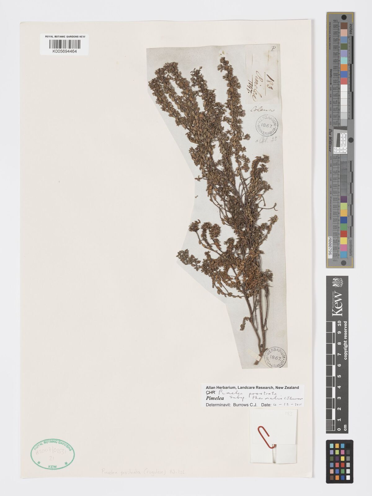 • Burrows, C.J. (2009). Genus Pimelea (Thymelaeaceae) in New Zealand 2. The endemic Pimelea prostrata and Pimelea urvilliana species complexes. New Zealand Journal of Botany 47: 163-229.