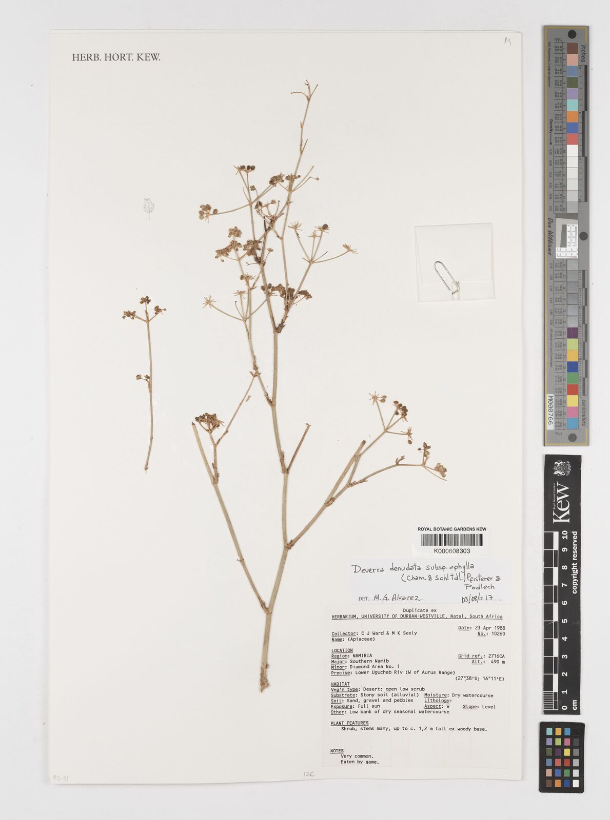 Aug 3, 2017 Ward, C.J.; et. al. [10236] Namibia Deverra denudata subsp. aphylla K000608305 Yes