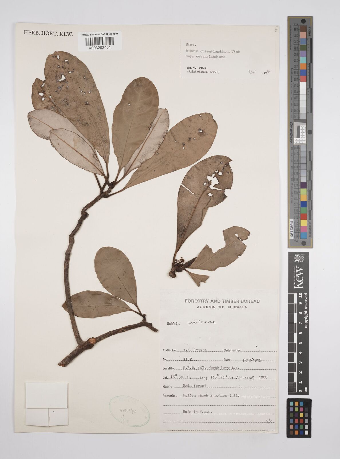 The native range of this species is NE. Queensland. It is a shrub or tree and grows primarily in the wet tropical biome.