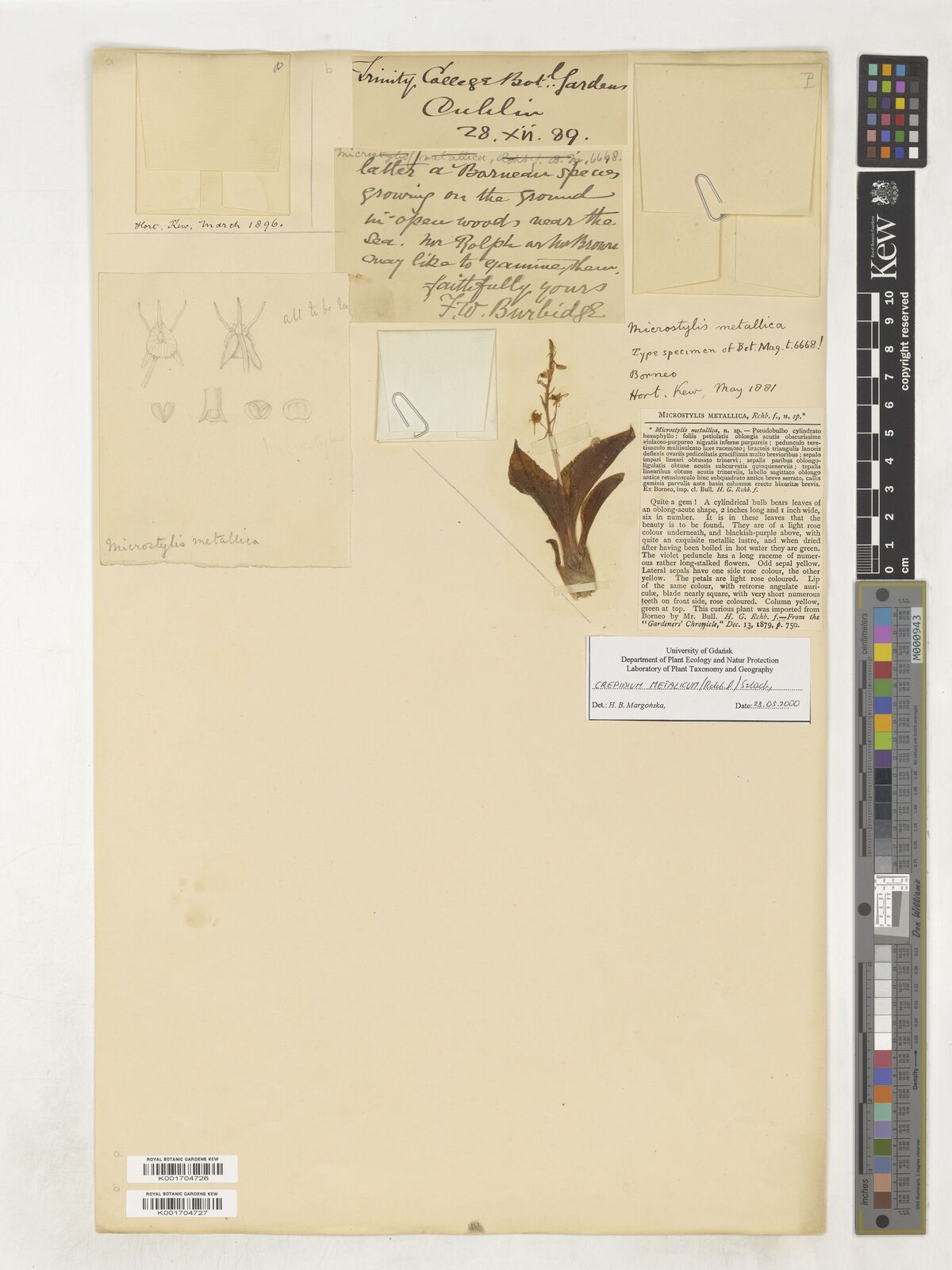 • Govaerts, R. (2003). World Checklist of Monocotyledons Database in ACCESS: 1-71827. The Board of Trustees of the Royal Botanic Gardens, Kew. [Cited as Malaxis metallica.]